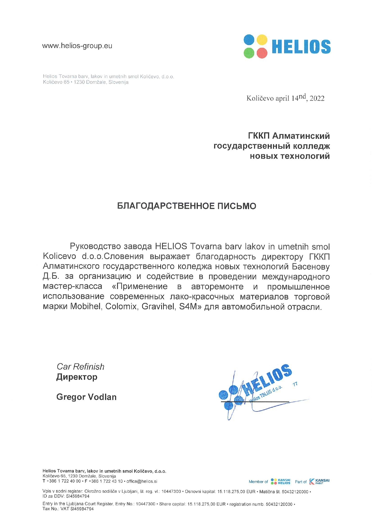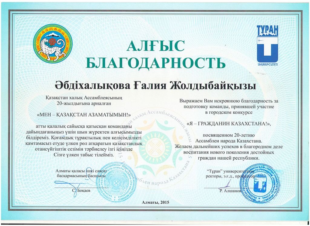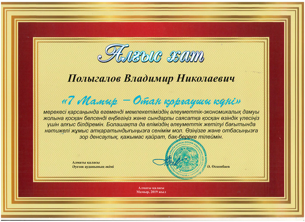 • Благодарственные письма